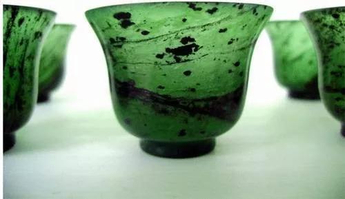 今天最為出名的酒泉夜光杯是由墨玉、翠玉打造,杯身呈墨綠色。