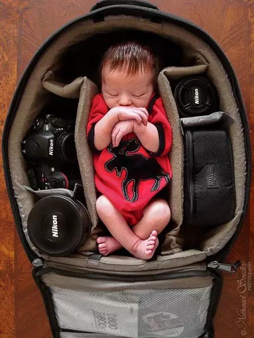 最近一群攝影師父母找到了最新的曬娃方式!就是讓寶寶們躺在父母的攝影包里。