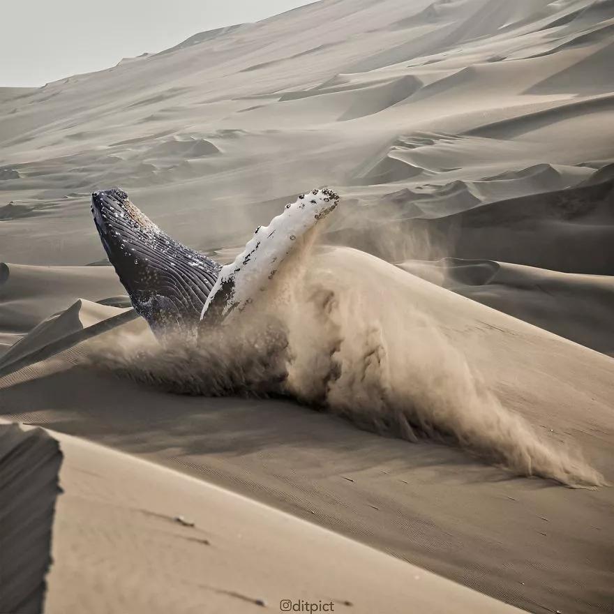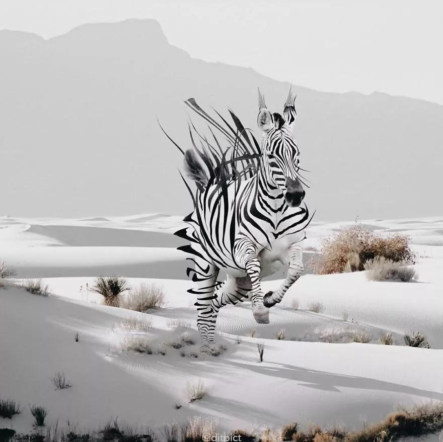 用一句話來概括就是:在他的手下,動物們真的已經被“玩壞”了!那么如何才能創作出如此創意十足的作品?阿迪亞表示,他喜歡在圖庫與社交媒體中尋找靈感,然后根據不同動物的不同特點,例如斑馬、長頸鹿和老虎的皮毛或皮膚,將動物圖片編輯成自己腦海中的形象。鯨魚在沙漠中游泳、天鵝在太空翱翔,棕熊背著一座雪山……一起欣賞!