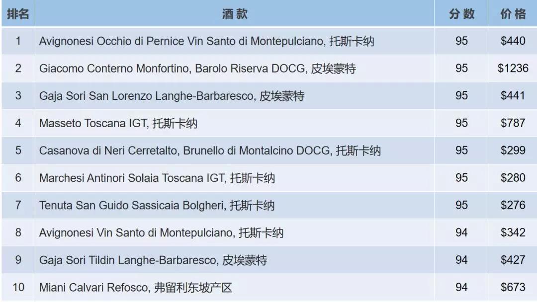 近日,Wine Searcher 推出2019世界十大意大利葡萄酒。