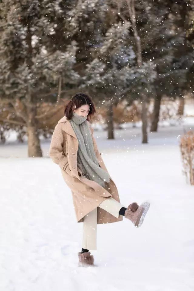 下雪了,地面都會變成白色,最直觀的表現了冬季與雪的到來,也是冬季最好的風景。女生走在這白雪皚皚的地上,無論怎么拍攝都非常好看,試試奔跑,試試走路,隨意一點。