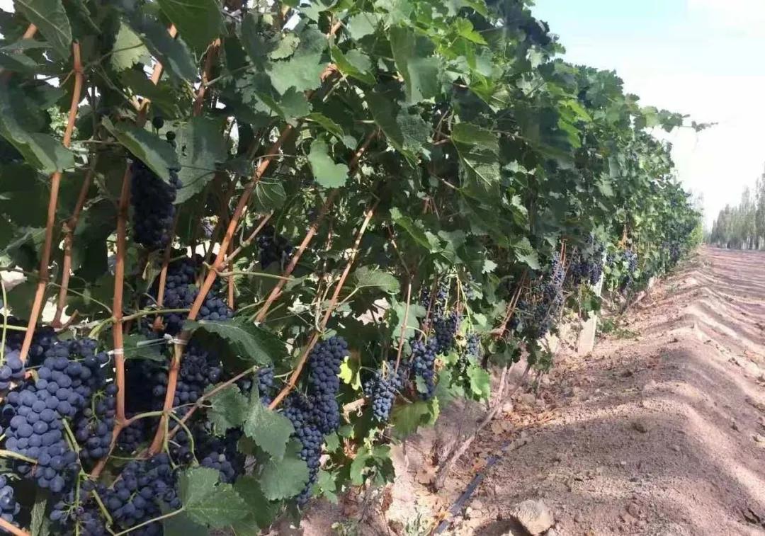 ▲ 新疆天塞的葡萄園,果實在齊腰高,整齊的一排