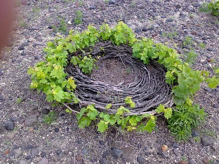 這是一種很怪異的樹形,整個葡萄樹盤繞成一個筐形,像是一個鳥巢一樣……它基本上,長這樣: