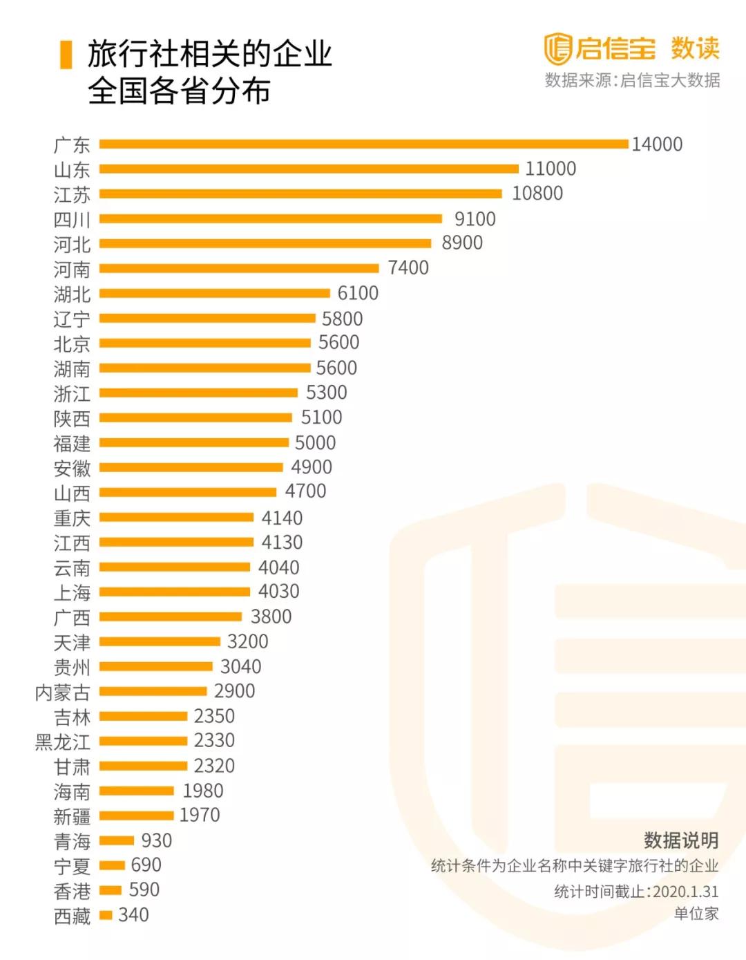 那么今年,根據啟信寶的數據統計,全國共有153529家有旅行社業務的企業,其中廣東、山東、江蘇分別數量為前三,可能損失會相對較大。