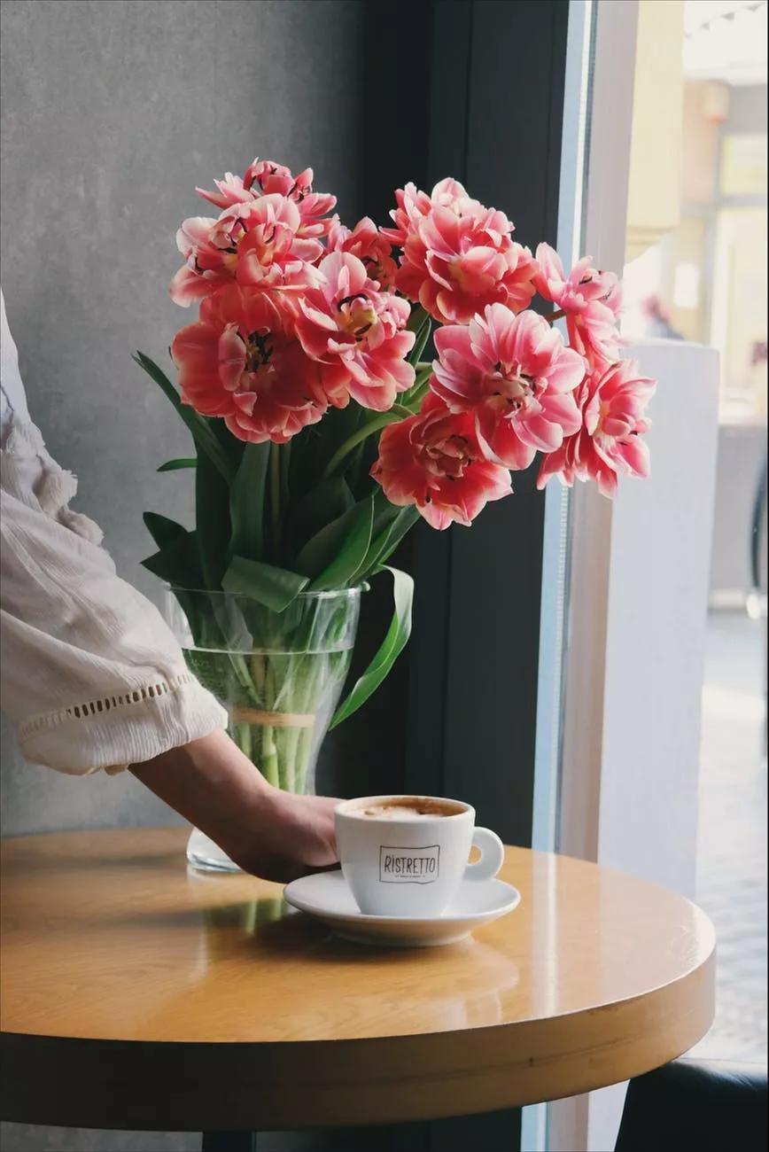 第2個思路,可以拿一些透明的玻璃瓶,插一下花,盡量讓這個形態跟這個花枝錯落有致,把窗戶拍到,如果窗戶的這個景色非常漂亮,那么我們也可以通過這個景色,跟這個花一起拍了,互相襯托,形成一個治愈系的的效果。