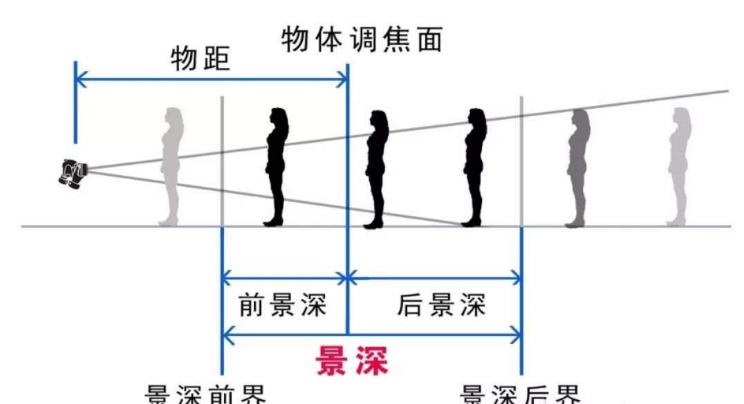 在聚焦完成后,焦平面前后的清晰范圍,就叫做景深,這一清晰范圍又分為前景深和后景深(參看下圖)。