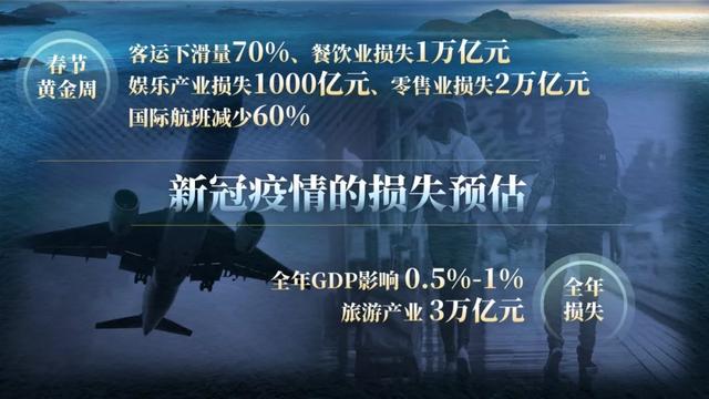 2019年大年初一,內地電影票房為14億元,今年僅為140萬元。除此之外,今年的春節黃金周,春運客運量下滑70%,娛樂行業損失1000億,餐飲行業損失1萬億,零售業損失2萬億,國際航運減少60%。