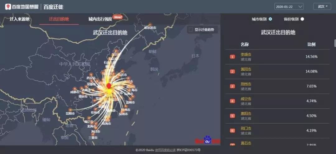 1月10日到23日從武漢流出了500萬人,通過大數據分析其具體流向,為各省市的疫情防控提供了精準的方向。