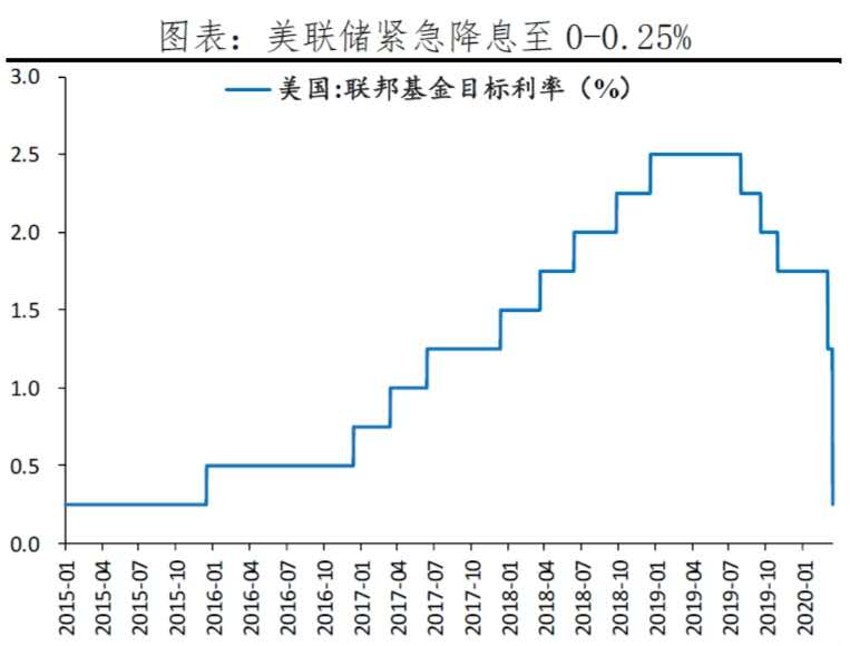 繼3月3日緊急降息0.5個(gè)百分點(diǎn)之后,3月15日美聯(lián)儲再次宣布將聯(lián)邦基金目標(biāo)利率下調(diào)1個(gè)百分點(diǎn)至0-0.25%的區(qū)間,并啟動(dòng)7000億美元的量化寬松計(jì)劃。此外,美聯(lián)儲宣布將貼現(xiàn)窗口利率下調(diào)1.5個(gè)百分點(diǎn)至0.25%,提供日內(nèi)信貸支持,鼓勵(lì)銀行使用資本和流動(dòng)性緩沖,將法定存款準(zhǔn)備金率降至0。