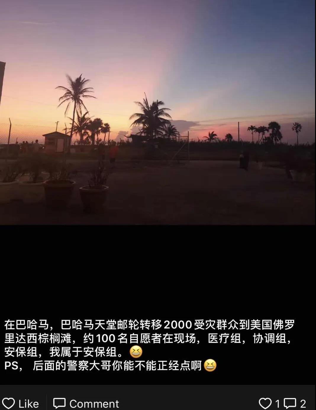 2019年夏季的巴哈馬地區的颶風期間,本文的主角巴哈馬天堂郵輪公司的船只是首批進行人道主義救援航程的船只之一,為災區疏散居民并且運送物資。