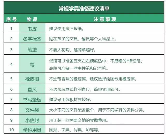 開學(xué)前,家長可以幫助低段的孩子共同討論一個學(xué)具準備清單,高段的孩子可以自主準備。給家長們提供了一份清單,僅供參考。