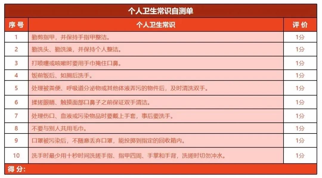 在家里提前與孩子學(xué)習(xí)個人衛(wèi)生的相關(guān)知識,增強自我保護意識。這里,也給大家總結(jié)了一些自我保護的自測單,可以做到的話+1分。
