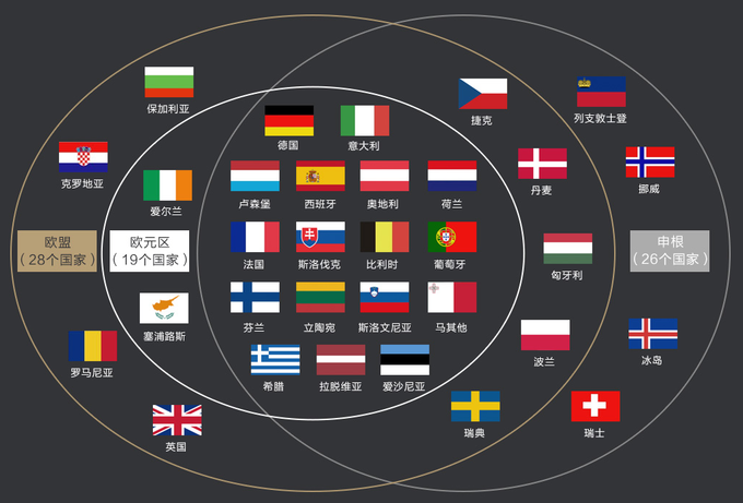 26個申根國分別是:奧地利、比利時、丹麥、芬蘭、法國、德國、冰島、意大利、希臘、盧森堡、荷蘭、挪威、葡萄牙、西班牙、瑞典、匈牙利、捷克、斯洛伐克、斯洛文尼亞、波蘭、愛沙尼亞、拉脫維亞、立陶宛、瑞士、列支敦士登、馬耳他。 (注:英國不是申根國家)