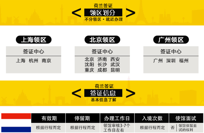 注意,申請荷蘭簽證是有領區劃分的。具體如下圖: