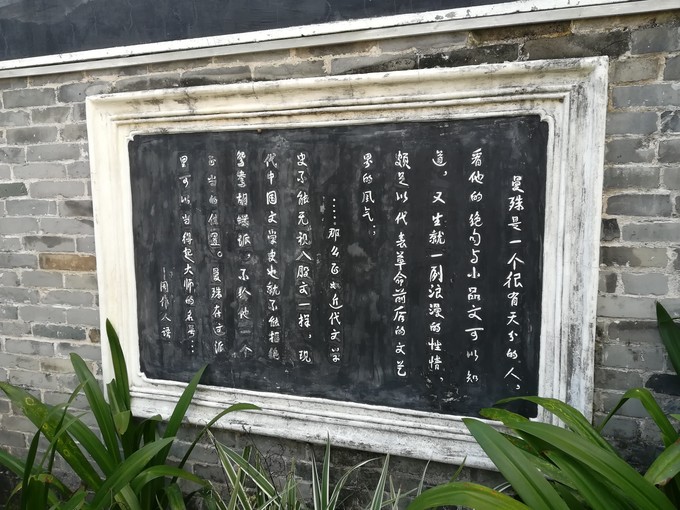 入門(mén)的碑廊上陳列了周作人、于右任、陳獨(dú)秀三人對(duì)蘇曼殊先生的評(píng)價(jià)