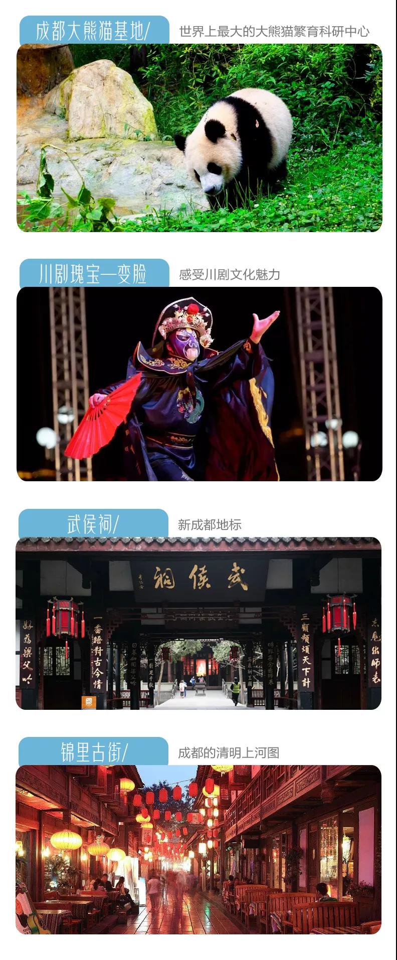 今天我們早上6點聊城市綜合樓(興華路與花園路交叉路口東北角)集合出發(fā),相聚在千年蜀都——成都。大家可以選擇去寬窄巷子感受成都特色美食小吃,在武侯祠體驗三國文化與古典之美,在春熙路享受國際大都市的繁華。還可以去品嘗各類成都美食品嘗,如小龍坎,冒椒火辣,川西壩子等。