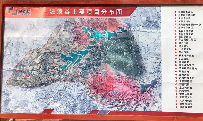 龍洲丹霞目前正在被開發,設在景區停車場的項目分布圖,表明了未來的規劃,收費之日不遠了。