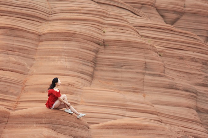 波浪谷狀的丹霞地貌,是由一億五千萬年前侏羅紀時期沉積的巨大的沙丘所組成,沙丘不斷地被一層層浸漬了地下水的紅巖所覆蓋,天長地久,水中的礦物質把沙凝結成了砂巖,形成了層疊狀的結構,所以被譽為“時光的指紋”。讓我們一起走進這紅色魔幻世界。