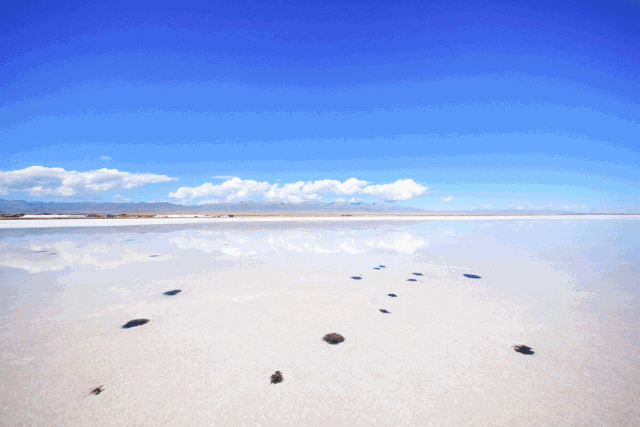 2.在湖中行走一定要注意鹽湖中的鹵水坑,鹽湖中有很多大大小小的鹵水坑,在拍照的時候一定注意腳下不要掉進去;