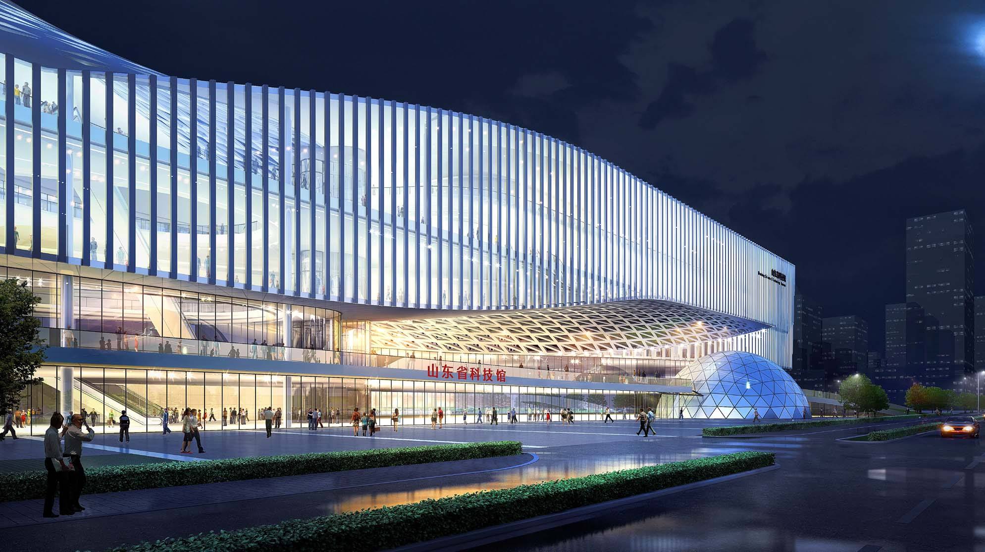 山東省科技館位于泉城廣場最東側(cè),是在原濟南劇院和美術(shù)總廠已有建筑的基礎(chǔ)上擴建而成的。最高位五層,新建部分高度達22.95米,擴建后的總面積近2萬平方米。一直四層為各類別的展廳,四層頂面上設(shè)有天象儀和大型電子屏幕。山東省科技館是一座普及科普教育、進行科技宣傳的大型現(xiàn)代化科技展館。