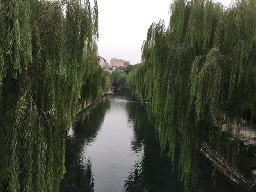 濱河廣場沿護城河南北兩岸呈帶狀,是泉城廣場內(nèi)的親水空間,形成了獨具特色的城市步行體系(環(huán)城公園游覽路線)。除保留原河岸種植的垂柳外,岸邊區(qū)設(shè)計了花壇、花缽、坐椅、石凳。在地下商場北出入口,建筑物上沿部分的種植池內(nèi),栽植迎春、常春蔓、爬墻虎等藤本植物。濱河廣場地面鋪鵝卵石及彩色地面,小橋流水、亭臺水榭,名泉環(huán)佩,泉水淙淙,楊柳依依,又現(xiàn)“家家泉水、戶戶垂楊”的勝景。濱河廣場宛如小家碧玉,溫婉玉潤,帶給你江南水鄉(xiāng)般的清涼。