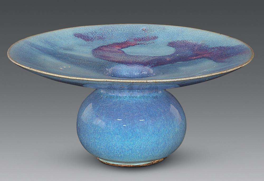 器物上單燭的紫斑幾乎不見,絕大部分是青藍釉和紅釉互相熔合的玫瑰紫色;