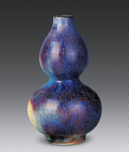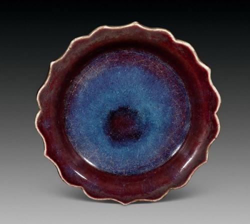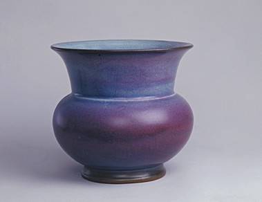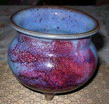 由于釉色的相互交融而產生的無數顏色不一、形狀各異的窯變,是構成鈞瓷區別于其它青瓷的另一個特色。鈞釉中的紫色引人注目。各種紫色是紅釉與藍釉互相融合的結果。鈞釉的紫斑在工藝上是將青藍色的釉上有意涂上一層銅紅釉所造成的。后人對鈞瓷的紫色的評價極高,近人劉子芬在《竹園陶說》中說“鈞窯器一枚,價值萬金┅┅宋時紫色如熟透之葡萄,濃麗無比,紫定、紫鈞,其器皆純色。”