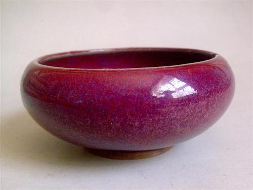 鈞窯瓷器是北宋時期出現的一種最特殊的青瓷,它的前身,顯然是唐魯山窯花釉瓷器,鈞窯窯變的特殊 性,除了在于強還原焰下呈現的銅從2價還原到0價而出現的姹紫嫣紅外,特殊的釉面結構也影響到它的顯色,一般來說,鈞窯的釉區別于其他窯口青瓷的最大之處,是它的釉結晶結構,呈現一定的纖維狀,如果你用放大鏡觀察鈞窯瓷器的釉面,不難發現,這種纖維狀結構主要是顯色部分,而纖維狀結晶和玻璃狀均質結晶(就是不顯色部分)之間,有很大的氣泡,這些氣泡有不少突破釉面,造成鈞窯瓷器釉面呈現橘皮棕眼狀,這顯然有助于光在釉面的散射,使得鈞窯窯變顏色的層次感更加豐富,這一般是加入石灰堿的緣故,所以說,鈞窯窯變的呈色,銅的還原反應是直接原因,而石灰堿入釉則是間接原因。