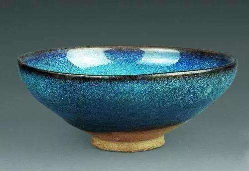 采用簡單的工藝處理,卻達到了給人以美感的藝術效果。更引人注目的郟縣黃道窯所燒制的黑釉藍斑器,在白釉上施青藍彩斑,有其獨特的藝術風格。其窯變工藝可能是在蘸釉之后,采用涂彩或點彩的方法,以 加重色彩,經過窯變,使其形成塊狀的斑彩,這種塊斑,形狀各異,變化萬千,黑里泛藍,或黑釉黃斑,恰似金光閃閃,獨具風姿。