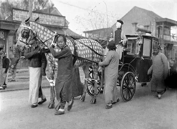 天津,東馬路青年會(huì)門前等待新人的馬拉轎車