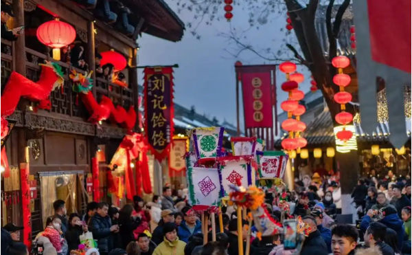 【陜西省】鳳翔縣於元宵節宴請女兒、女婿,稱之“吃十五”。并送燈、送油,稱之“添油”。