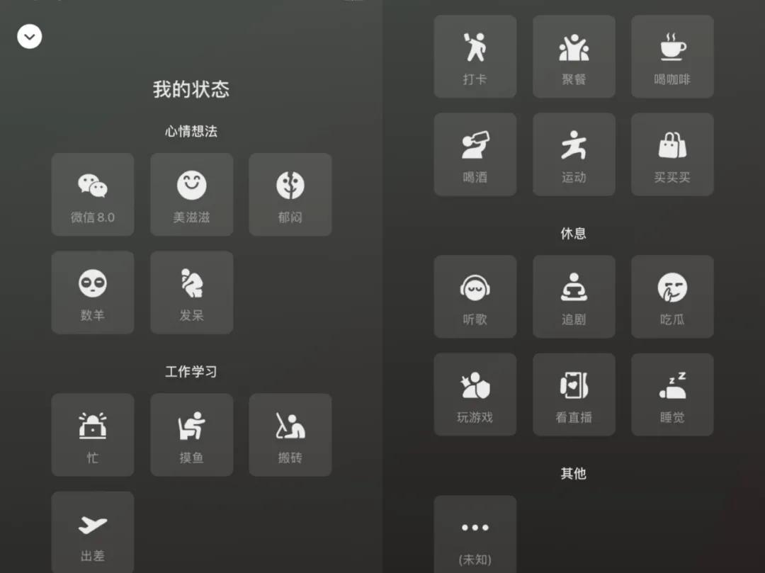 在忙、飛行、勿擾...... 添加這些狀態(tài)的時(shí)候,還可以同步添加背景圖,輸入符合當(dāng)下心情的文案。