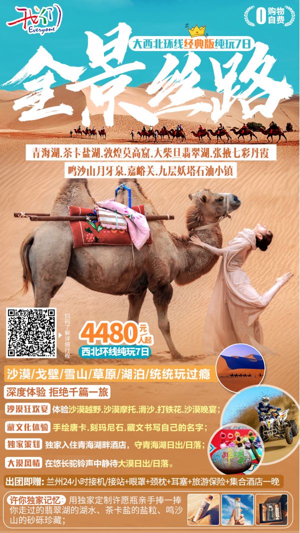 丹霞地質公園+嘉峪關+敦煌+莫高窟+鳴沙山月牙泉+阿克塞石油小鎮+大柴旦翡翠湖+柴達木盆地+茶卡鹽湖+青海湖二郎劍景區+塔爾寺