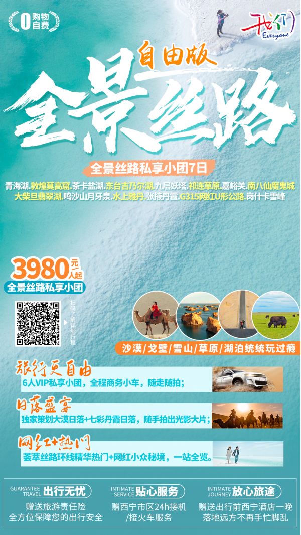 青海湖+敦煌莫高窟+茶卡鹽湖+東臺吉乃爾湖+九層妖塔+祁連草原+嘉峪關+南八仙魔鬼城+大柴旦翡翠湖+鳴沙山月牙泉+水上雅丹+張掖雅丹+G315網紅U型公路+崗什卡雪峰