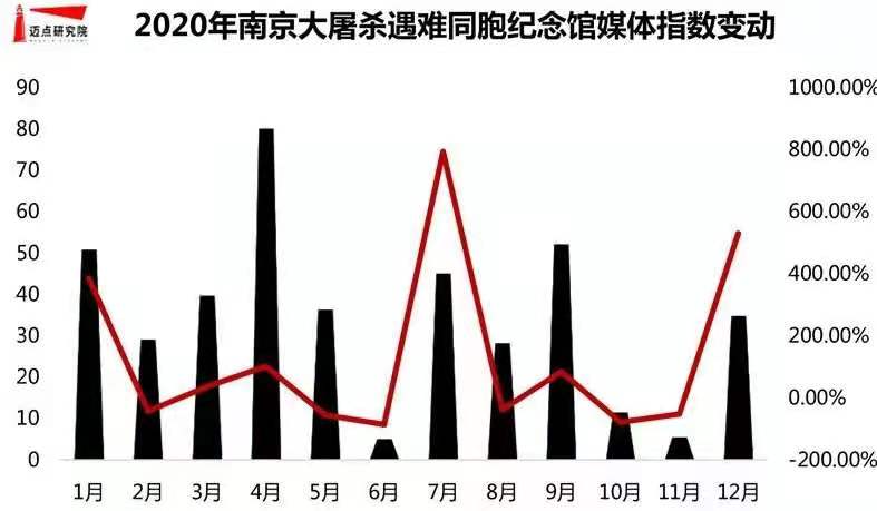 數據顯示,南京大屠殺遇難同胞紀念館媒體指數表現較為突出。年度趨勢變動中,全年指數波動較大,受疫后首個小長假的影響,景區于4月達到峰值。據統計,2020年景區動態多發布于國搜、網易、搜狐等相關媒體平臺上。