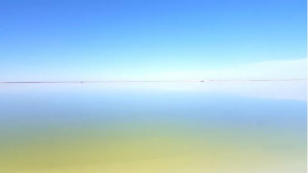 這座“鹽橋”,旁無護欄,下無橋墩,也無流水,從空中看,就像是直接橫叉在湖面上,它將鹽湖從中間劈成兩半,似乎沿著這條路走下去,就能達到神仙的住所。