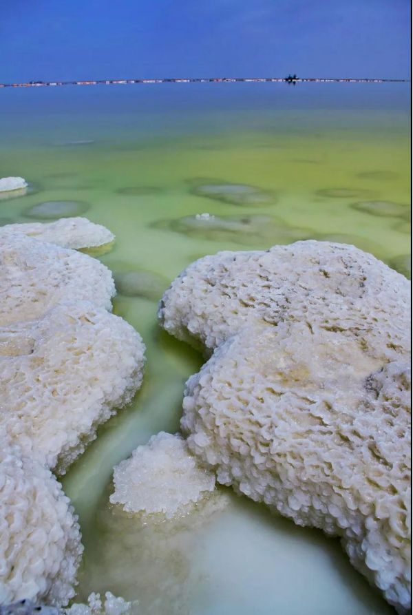 因為高鹽度的環境不利于生命的生存,所以曾經這里的土地上沒有綠草,沒有花朵,湖水中沒有魚兒,真的可以用萬籟俱寂形容。