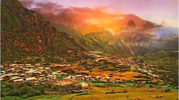 那里的山峰、村寨,在陽光的照耀下,呈現著夢幻般的色彩,如一幅絕美的風景油畫。