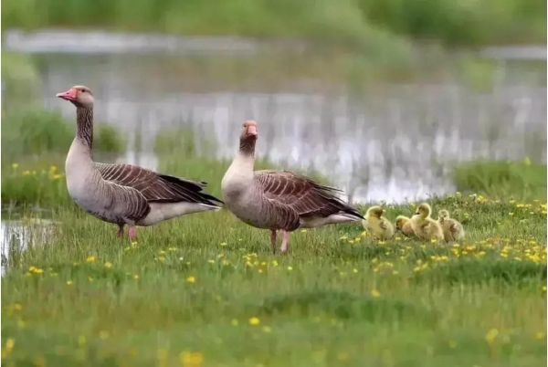 黃鴨、溪鷗、黑頸鶴成群結隊地棲息在湖畔,旱獺、灰兔時不時出來露個臉,歡快的百靈鳥在空中翻飛,身在其中,仿佛進入了夢幻的動物王國。