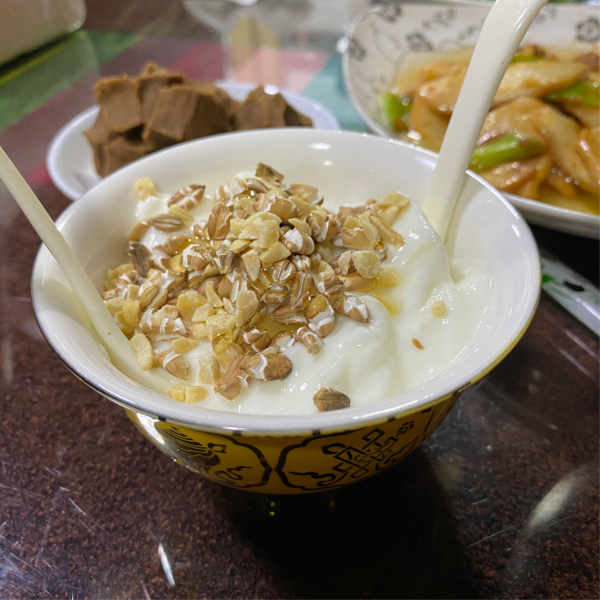 不過空氣總算清新,游覽結(jié)束,回到住處。帶著團(tuán)里的叔叔阿姨們?nèi)ァ半]源小灶私房菜”吃飯。當(dāng)?shù)厝撕芏?,等上菜半小時有余,砂鍋豆腐和牛奶雞蛋醪糟不錯~紅油實(shí)在吃不慣,無奈接下來幾天川菜口味居多。