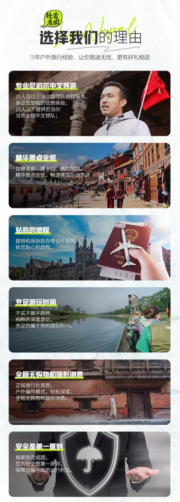 4.導(dǎo)游服務(wù):15人及以上派中國領(lǐng)隊(duì)全程服務(wù),保證您旅程的優(yōu)質(zhì)體驗(yàn);15人以下提供尼泊爾當(dāng)?shù)厝讨形念I(lǐng)隊(duì)(成都機(jī)場有送機(jī)人員協(xié)助辦理登機(jī)牌、出發(fā)手續(xù))。