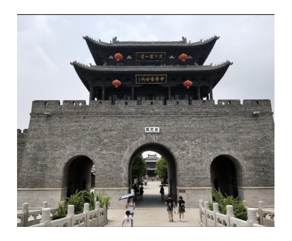 的主題景區。面前這座雄偉的城門樓上赫然懸掛著兩塊金宇牌區,最上面的“