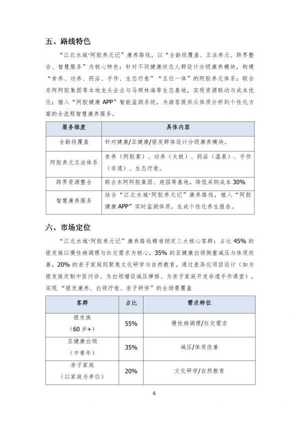 “江北水城·阿膠養(yǎng)元記”康養(yǎng)旅游路線設(shè)計,以“康養(yǎng)+旅游”為服務(wù)特色,以60+中老年人為服務(wù)對象。
