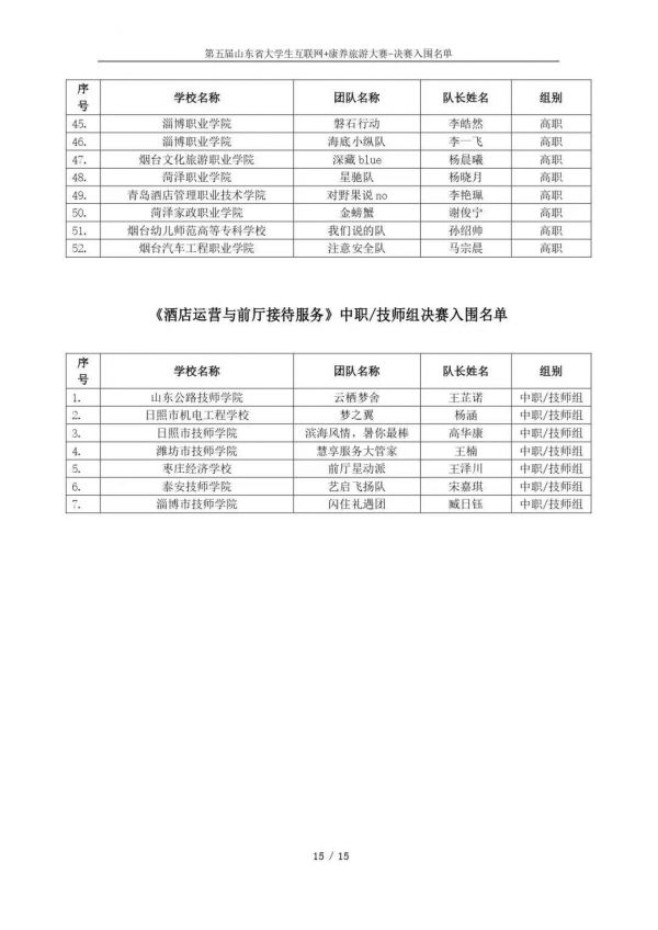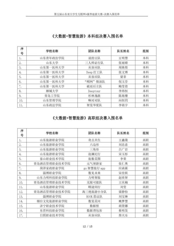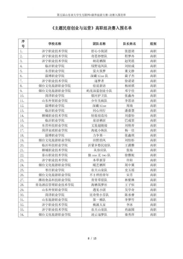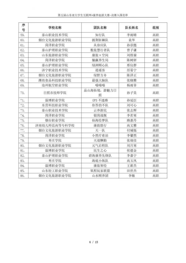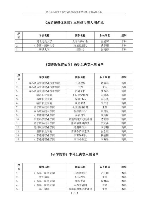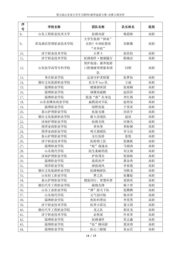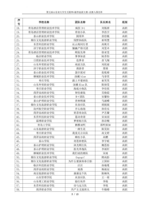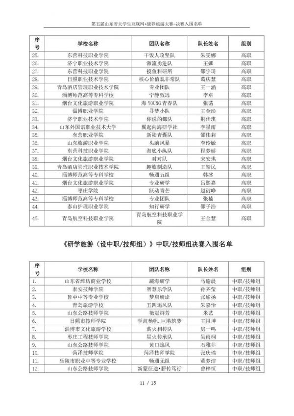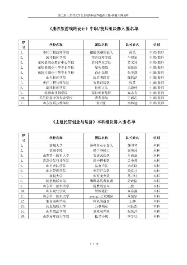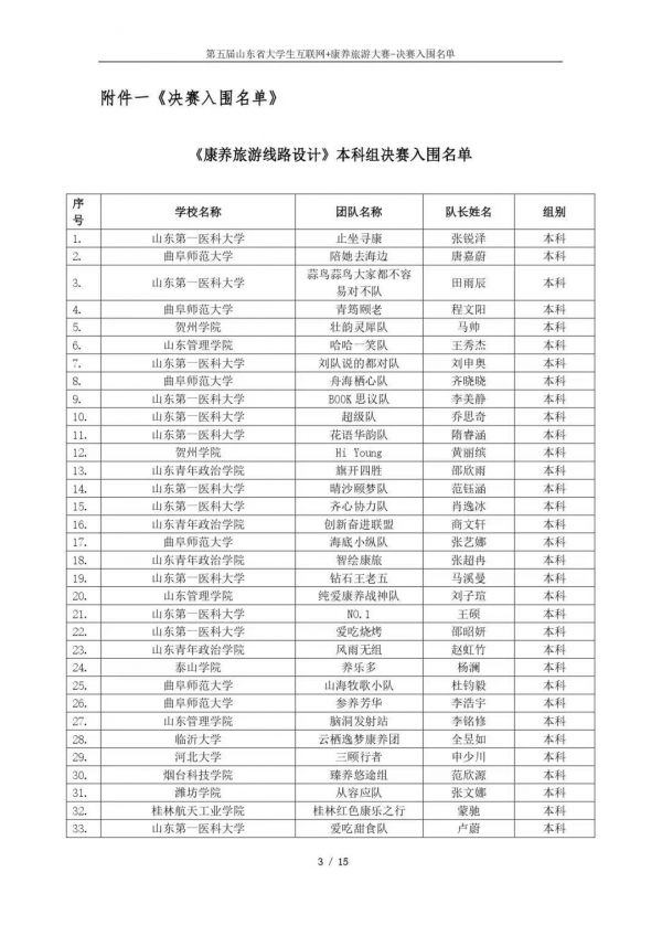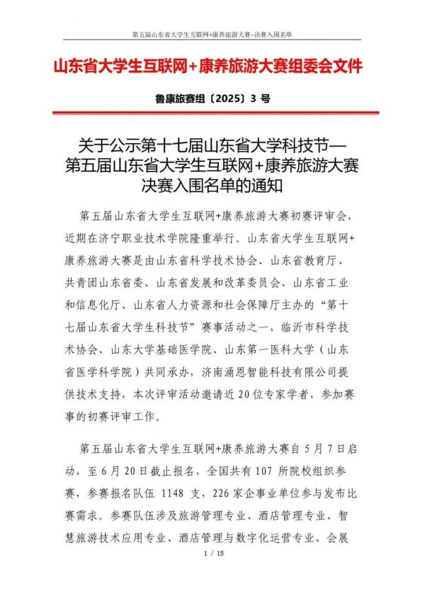 以下鏈接為第五屆山東省大學(xué)生互聯(lián)網(wǎng)+康養(yǎng)旅游大賽決賽入圍名單公示通知原文件:https://mp.weixin.qq.com/s/bd61lqBY3XZJo0ujX1mO_g?scene=1&click_id=2