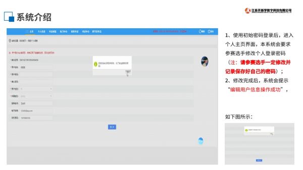 3.登陸后系統會要求修改個人登陸密碼。修改完成后系統會提示。