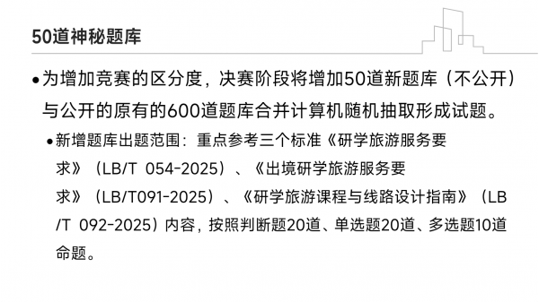 首頁 >> 資訊平臺 >> 劉寶平工作室__Mr. Liu Stu >> 劉老師課堂 >> 大賽指導 >> 2025年指導大賽 >> 【研學】2025 年全省研學旅游指導師職業技能競賽