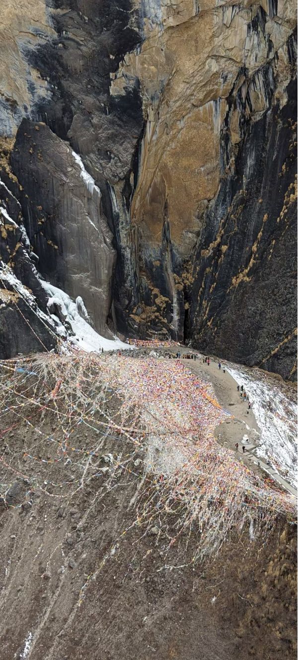 清晨從雨崩村出發,沿著溪流向上,經幡在風中飄揚,劉會長給隊員們講著神瀑的傳說,藏地的神秘氛圍拉滿。