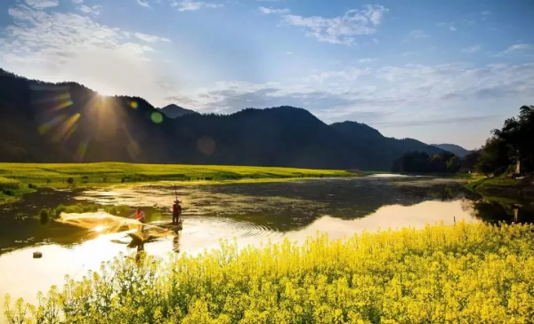 午餐后到達(dá)慶源,慶源村素有小桃園之稱(chēng),長(zhǎng)期與世隔絕,民風(fēng)淳厚、景色直人,空氣清新不染纖塵,泉水清澈賦含靈氣。油菜花、梨花和桃花同時(shí)監(jiān)開(kāi),把慶源人家籠罩在一派“金山、銀海、胭脂云"的最象之中。