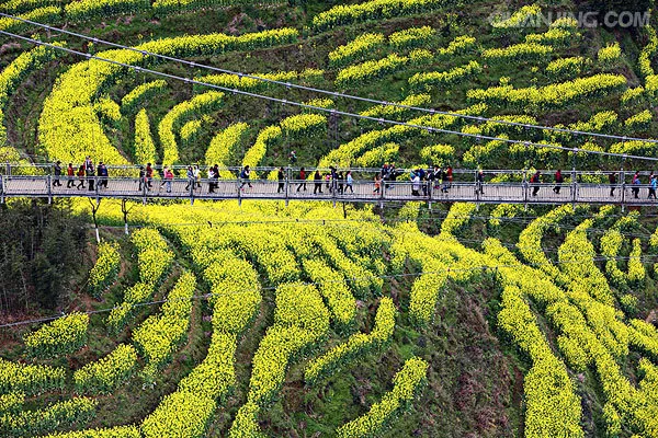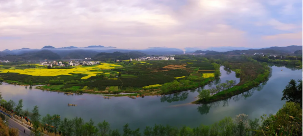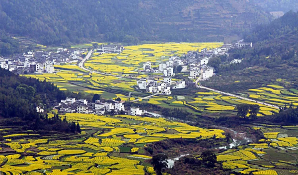 整個(gè)徽州便上演巨型的金黃色油菜花團(tuán)體操...