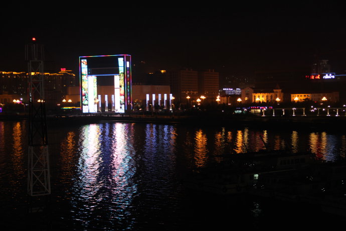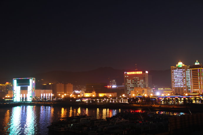 威海碼頭的夜景更讓人們向往,附近高樓在海中折射出的倒影,讓威海碼頭顯得無光十色,也讓我體會到了什么是真正的燈火闌珊。